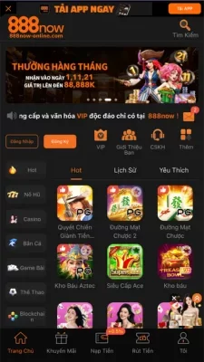 888NOW mang đến đa dạng trò chơi hấp dẫn, phù hợp với mọi sở thích của người chơi. Dưới đây là những trò chơi được yêu thích nhất: